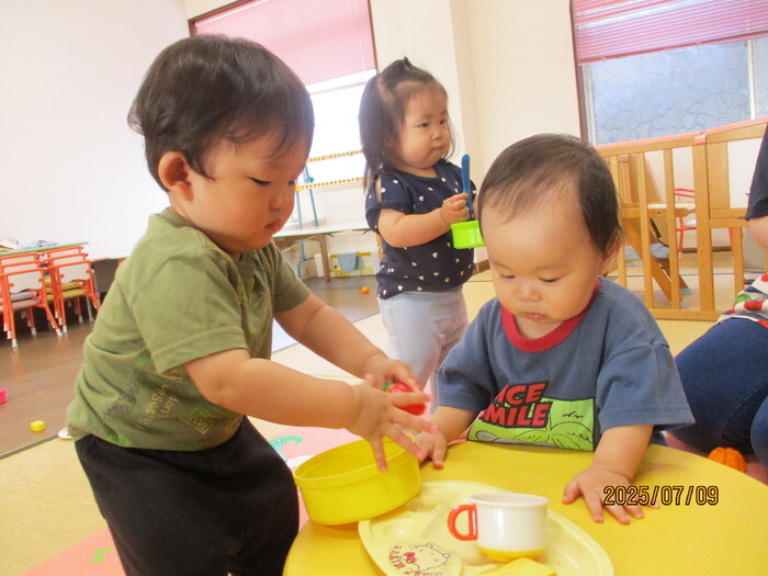 お友だちがしている事も気になり、近くで同じことをしようとする子も💓日々少しずつ成長する姿を見ることができ、とても嬉しいです✨ | ||