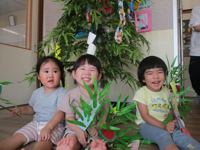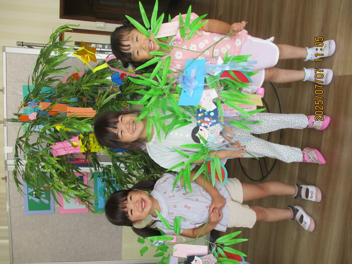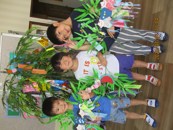 参観日にお家の人と作った七夕飾り✨完成をとても喜んでいました💓七夕の願い事はみんなそれぞれで、読んでいてとてもホッコリしますね⭐みんなの願い事が叶いますように🎋 | ||