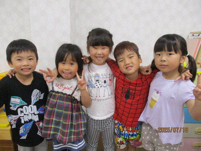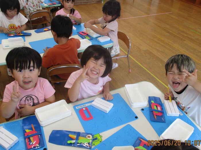 毎日、粘土やお絵描き・ブロックなどのコーナー遊びを楽しんだり、椅子取りゲームや爆弾ゲームなどの集団遊びをしたりしながら、暑い夏を乗り切っています🌞負けず嫌いな子がたくさんいるたんぽぽ組さん🌼悔しくて泣いてしまう事もありますが、気持ちを切り替えて「もう1回!!」と諦めずに何度も挑戦することができるようになってきました✨ | ||