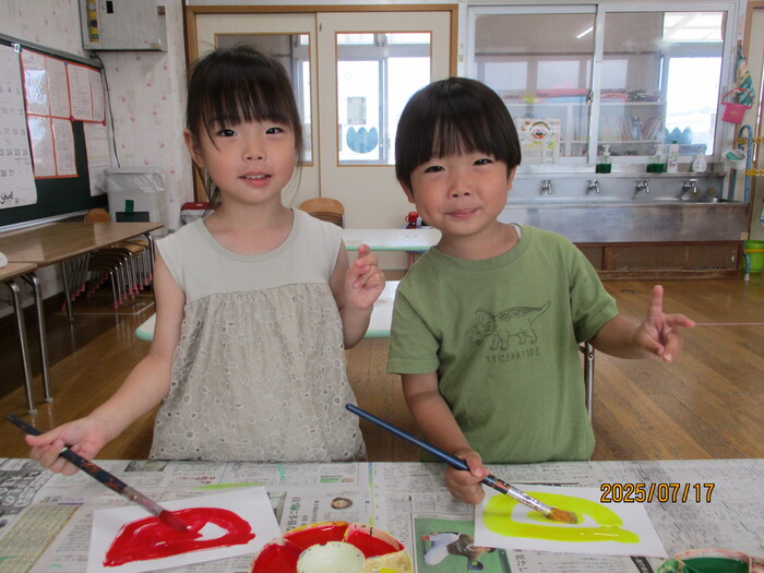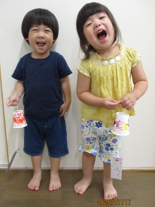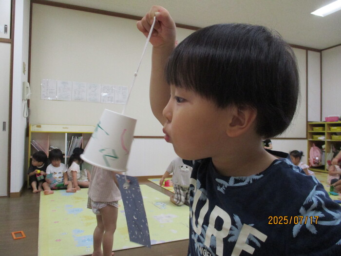 みんなで風鈴の制作をしました🎐廊下で涼しそうに揺れる風鈴をじっと眺める姿に癒されました😊 | ||