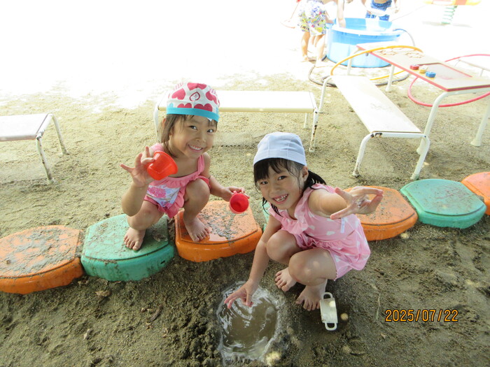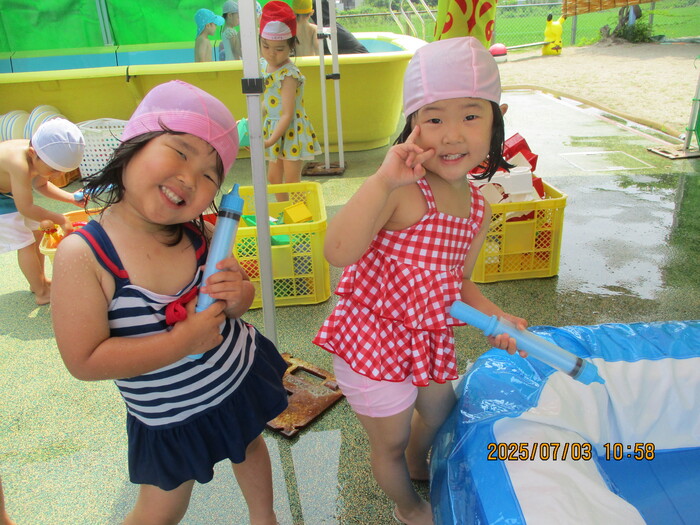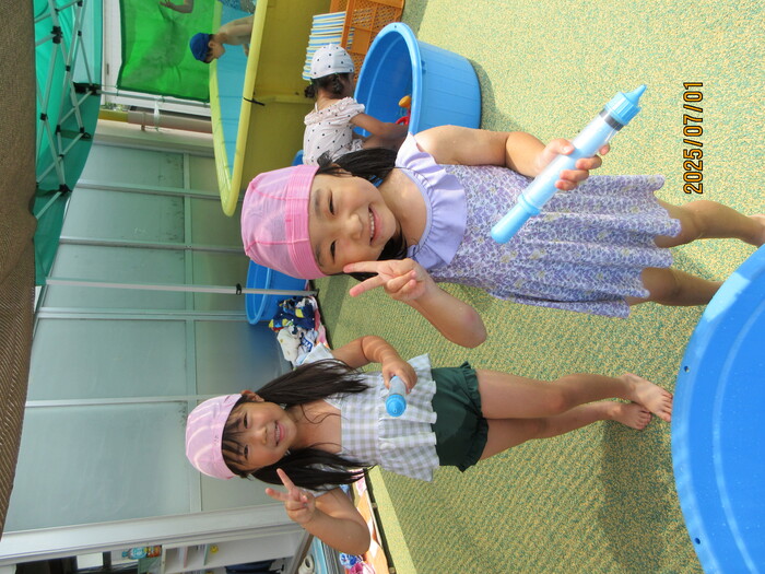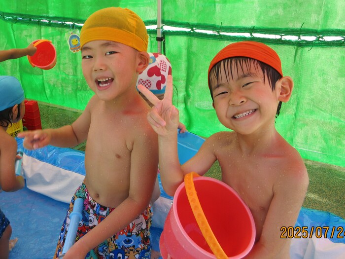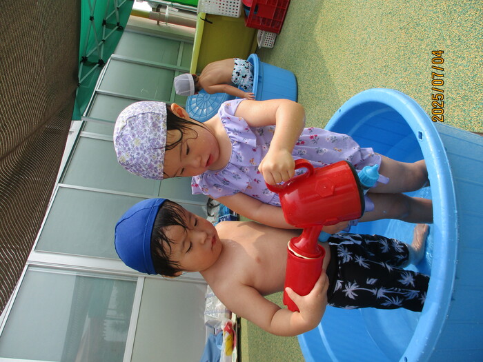 水遊びも大好き🌞プールバックを持って嬉しそうに登園する姿が見ていて微笑ましかったです💛初めての保育園でのプール、満喫できたね✨ | ||