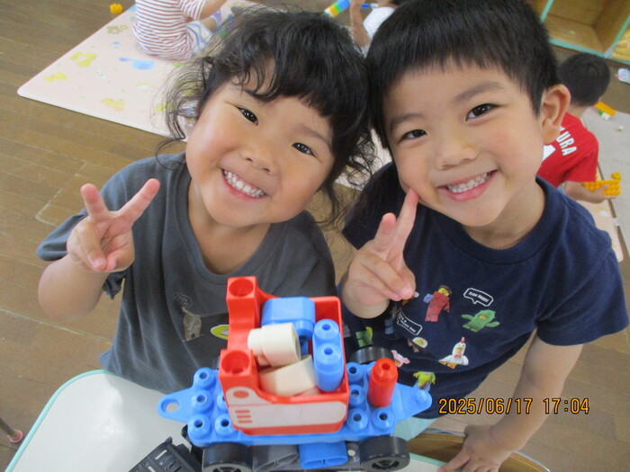 お友だちと一緒に協力して作ったり、良いと思うところを真似したりして、とっても仲良しなちゅうりっぷ組さん⭐ | ||