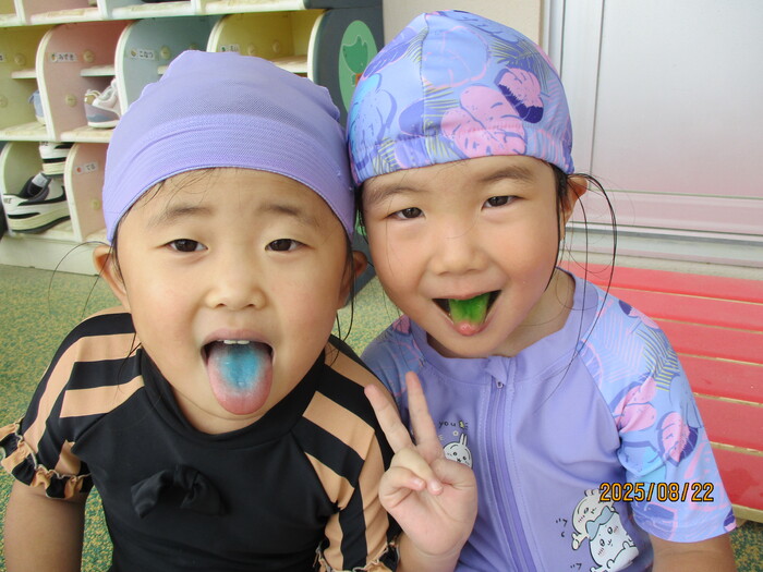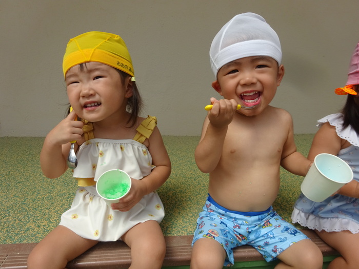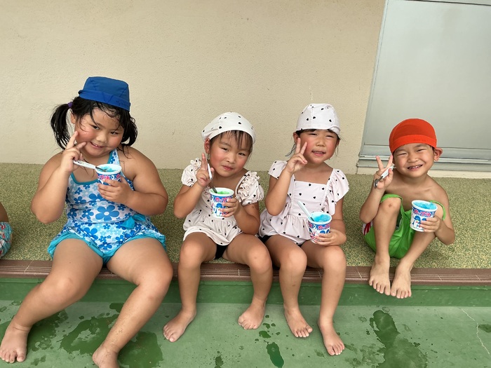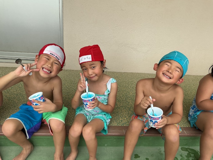 プール最後の夏あそび大会では、金魚すくいをしたり、園長先生にかき氷を作ってもらい大喜び😍🎉今年も楽しい思い出がたくさんできたね🥽✨ | ||