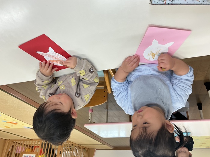 子ども達のふとしたやり取りに成長を感じますよね✨ 進級にむけ、着替えやトイレトレーニングなどを頑張っているうさぎ組さんです🐰 | ||