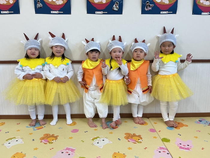 うさぎ組さんにとって、保育園で初めての発表会✨たくさんの保護者の方を前に、ドキドキしながらも可愛い笑顔とダンスを披露してくれました🥰昔話に出てくるキャラクターに変身して登場♡その可愛い姿に、みんなメロメロでした💓 | ||
