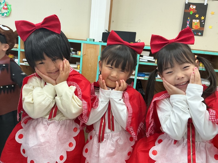 ちゅうりっぷ組さんの劇は『赤ずきんちゃんにおまかせ!』😘みんなが知っている赤ずきんちゃんのお話とは一味違った内容で、とても楽しい劇となりました💑みんなでセリフや踊りを考え、全員が主役の素敵な劇でした🎶 | ||