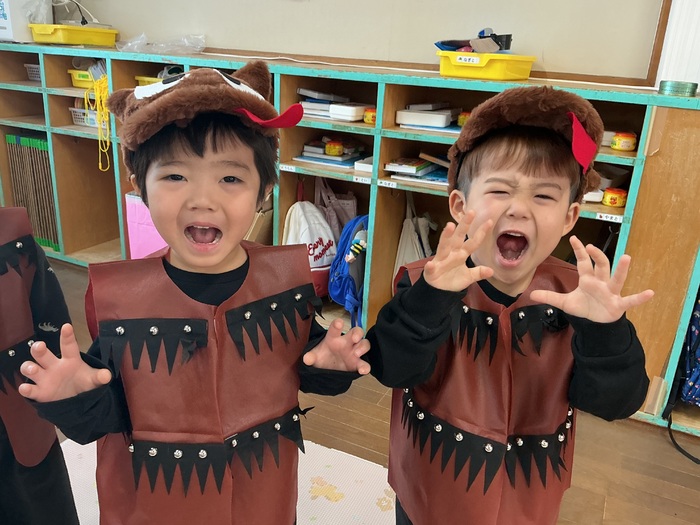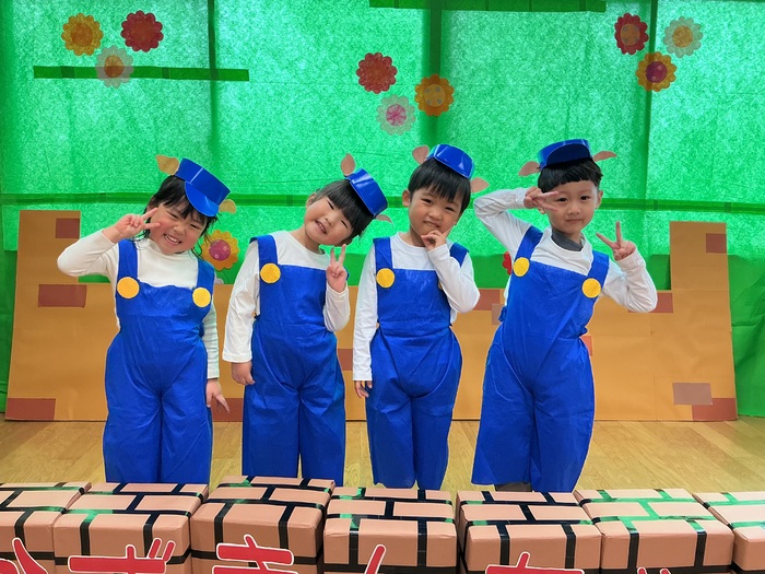 ぱんだ組の劇は「3びきのヤギとトロル」🐐様々な役になりきって頑張りました✨可愛い衣装を着てステージで楽しそうに発表するぱんだ組のみんなが印象的でした🥰来年の発表会も楽しみですね🎵 | ||