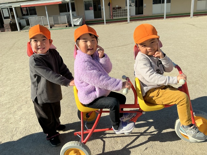寒さに負けず、元気いっぱいのちゅうりっぷ組さん🌷戸外では汗をかくほど体を動かして遊んでいます💪 | ||