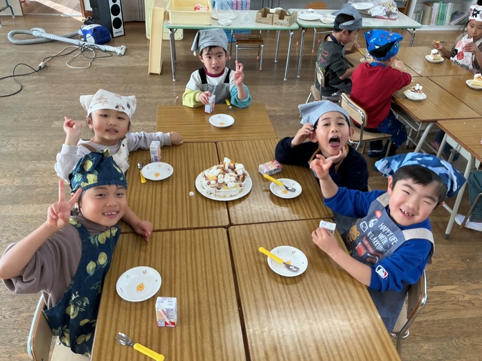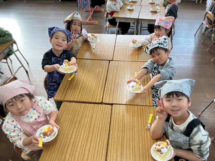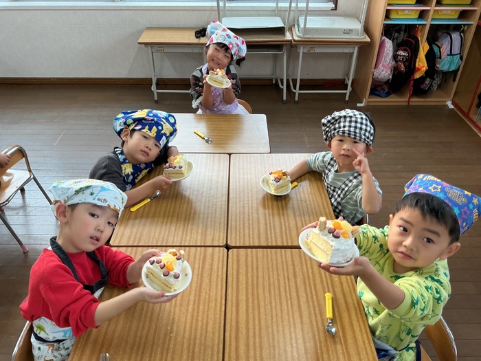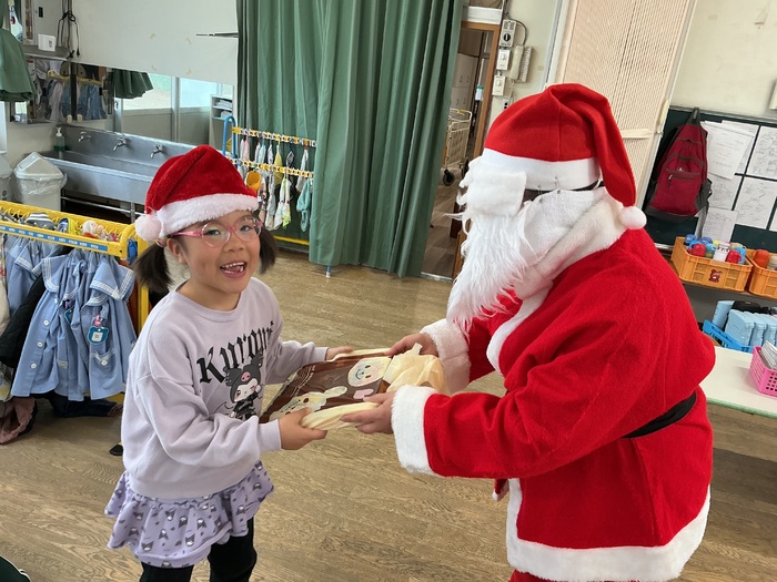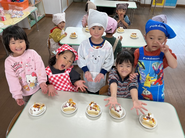 みんなが楽しみにしていたクリスマス🎄何日も前から指折り数える姿がとても可愛かったです💛保育園にもサンタさんが来てくれ、みんなにプレゼントを渡してくれました✨ 昼からはクリスマスケーキ作り🍰みんなで飾り付け、とてもおいしいケーキが完成しました🎵 | ||