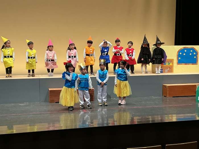 ひまわり組さんの劇は『白雪姫』🍎ひまわり組さんにとっては初めてのあかがねミュージアムでの発表会✨大きいステージにドキドキする子もいましたが、当日は保護者の方の前で、練習してきた成果を披露することができました😍 | ||