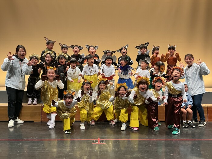 ゆり組さんの劇は『ライオンキング』🦁長いセリフや楽しい踊りなど、完璧に覚えて披露する姿はさすが年長さん✨当日のゆり組さんの姿はキラキラとても輝いていました⭐たくさんの感動をありがとう❣❣ | ||