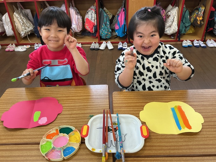 指先を使った細かい作業もできるようになり、自分のイメージした作品ができる喜びを感じています🤩 いよいよ来年は年長さん✨楽しみだね⭐ | ||