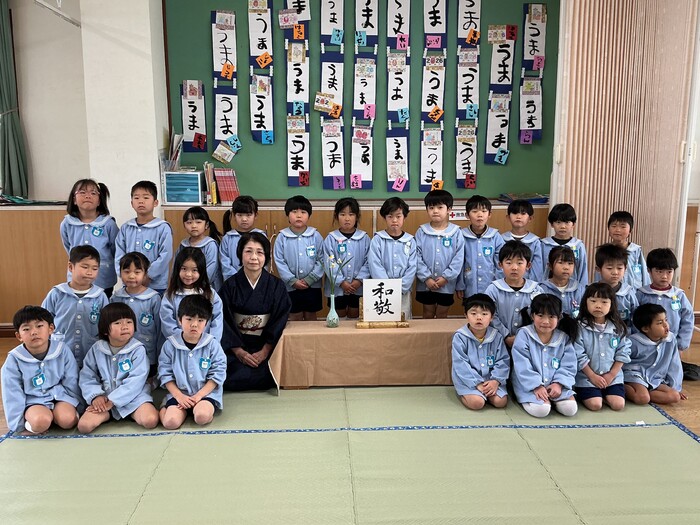 1年間を通して頑張ってきたおちゃのお稽古🍵今では道具も上手に扱い、お点前も上手になりました✨お茶の先生に教えていただいた『和敬』の心をこれからも大切に大きくなってね🤩👍 | ||
