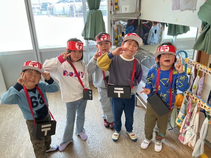 毎日保育園で頑張ってくれている年長さん✨年明けには郵便屋さんとしてみんなが書いた郵便を保育園のお友だちに配達してくれました✉毎日のお仕事お疲れ様😘ありがとう⭐ | ||