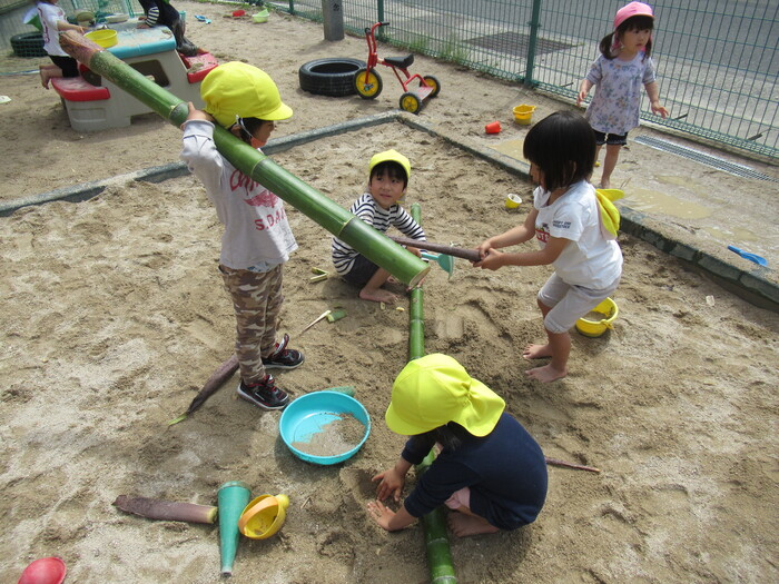 山で見つけた竹を使って、どんな遊びができるかな♪