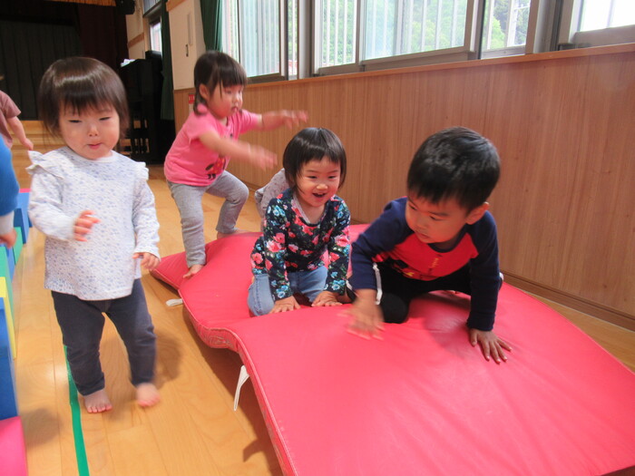 「○○がしたい」の気持ちを大切にしながら、 ☆好きな遊び☆をみつけ、先生やお友だちと一緒に楽しめるといいなと思っています。 お話も少しずつ上手になってきて、思いや欲求などなど、、、色々なお話しをしてくれています。 時にはけんかもあるけど、互いの気持ちを受けとめながら、友達っていいな♡と感じられるような雰囲気作りをしていきたいです☆ | ||