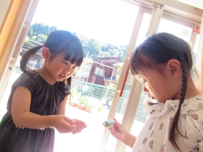 ☆オクラスタンプ☆ まんぼう組が育てたオクラで スタンプあそびをしました♪ 硬いオクラですが、 スタンプをすると ぷにぷにの感触!! 何度も押して 楽しんでいましたよ^^ | ||