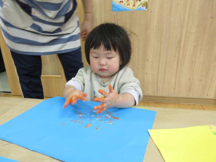 『のぼるよ、のぼるよ~🎵』 室内用のジャングルジムがお気に入りで、両手足の力をいっぱい使って登ったり、下りたりを繰り返してます!てっぺんまで登って、『せんせーい!』と手を振ってアピールする姿もとても可愛いです💗 | ||