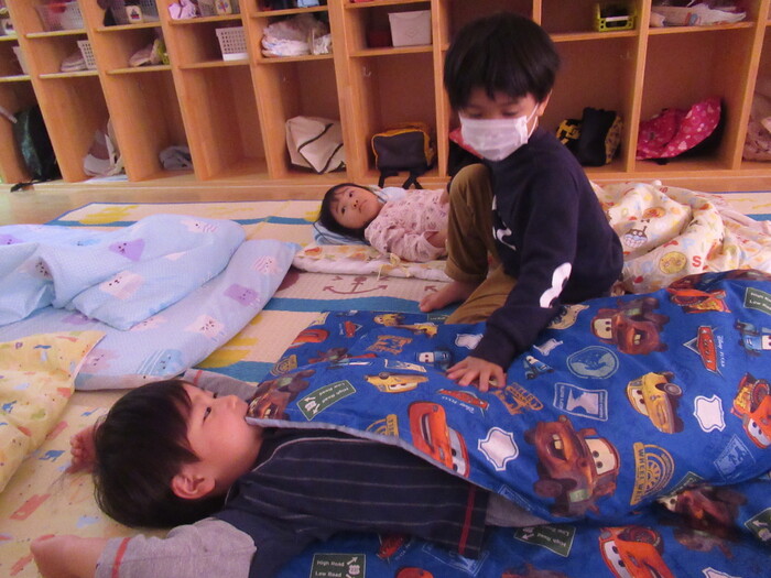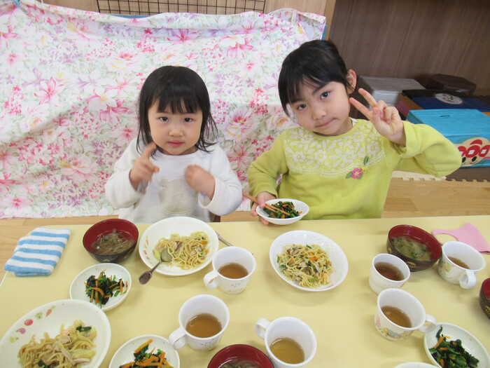 もうすぐ卒園する年長さんと一緒に… 給食やお昼寝の時間を一緒に過ごしました! | ||