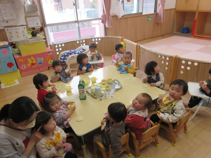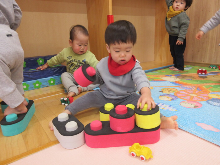 からだを動かすことが大好きな子どもたち♡ 3月も踊ったりボールや積み木で元気に遊びました!! お友だちとのやりとりも見られるようになり 日々子どもたちの成長を感じています。 入所した4月を思い出すと、とっても大きくなりました!! 「せんせ~」や「ちょーだい」などお話が上手になったり ズボンの着脱に挑戦してみたりできることがたくさん増えましたね! 楽しかった1年間もあっという間。。。 振り返ると色んな出来事を思い出します。 4月からは”ぺんぎん組”です♡ ニコニコ笑顔で元気いっぱいの1歳児さんになってね♬ | ||
