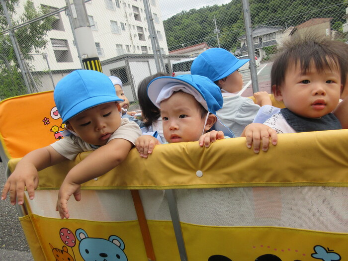 お散歩や戸外遊びが大好きです☆ 保育士が外へ出る準備をしていると… 自分の頭をポンポンとしながら、『ぼうし‼』と言って帽子をとってもらおうとする姿もみられるようになりました(*^-^*) 戸外に出る前にいつも被っているので、覚えたようです! 今月もたくさん秋の自然を感じられるようなお散歩を楽しみたいと思います♪ | ||