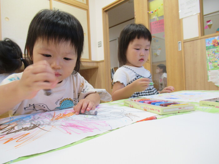 9月に突入し、秋になりました! まだまだ暑い日が続きますので、 涼しい場所で休憩をしたり、水分補給をしたりと、 気を付けながら大好きな戸外遊びをしていきたいです! | ||
