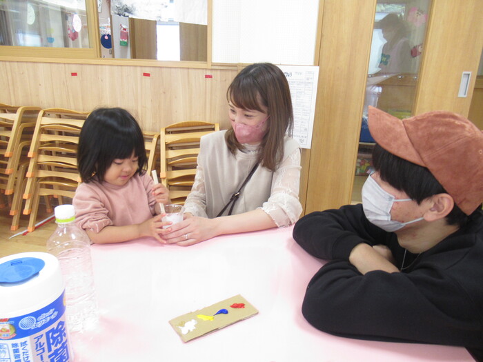 先月は親子参観日がありました! スタンプラリーをしながら3つの遊びを 大好きなお母さんやお父さん、おばあちゃんと 一緒にして嬉しくて楽しかったね♪ たくさんのご参加ありがとうございました! | ||