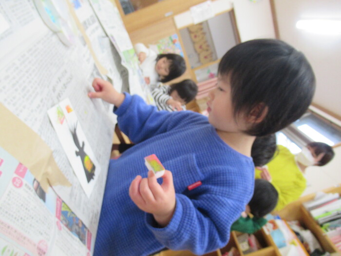 一生懸命作った 素敵な年賀状☆ みんなでポストに入れにいきました! お休みのお友だちの年賀状も 一緒に出したよ(^^) | ||