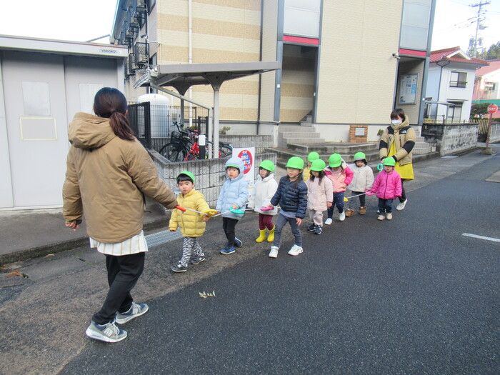 まんぼう組さんと社家地神社へ初詣に行ったよ! 初めてお散歩ヒモを使わず、 手を繋いでお散歩に挑戦! お兄さんお姉さんと手を繋ぎ、 最後まで手を放さず歩くことが出来ましたよ!! | ||
