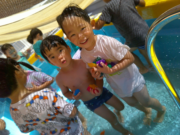 プール遊び 念願のプールに入りました♪ ダイナミックに水遊びができる大きなプールに 大興奮の子どもたちです♪ 入れる日はたくさん入って遊びたいと思います!! | ||