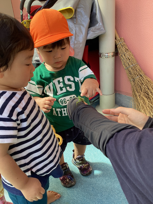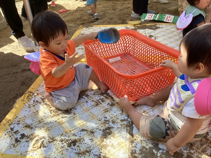 めだか組 今月から新しいお友だちが2人入園してきました✨だんだんと涼しい日も増えてきて散歩に行きやすくなりました!園庭でも楽しく伸び伸びと遊んでいます(^^♪お友だち同士での触れ合いも増えてきてみんなで楽しく過ごしています♡これからも寄り添いながら子どもたちが楽しめるようにしていきたいと思います! | ||