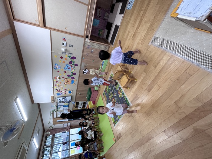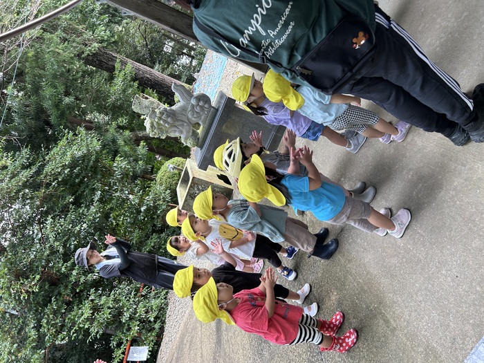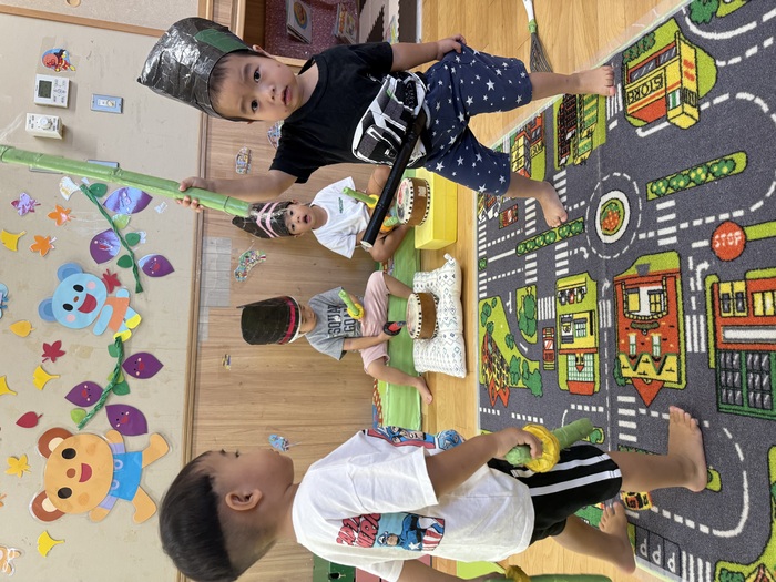 来月には暑さも和らいで秋本番を迎えられそうですね!! 子どもたちと一緒に季節を感じながら、園外保育へ出掛けたり、自然物に触れながら楽しんでいきたいと思います!! | ||