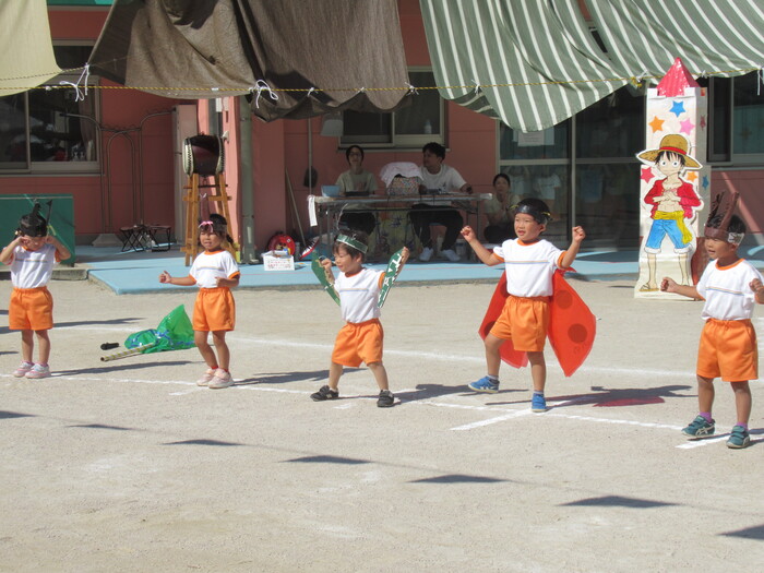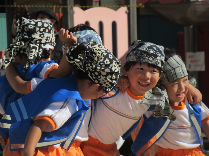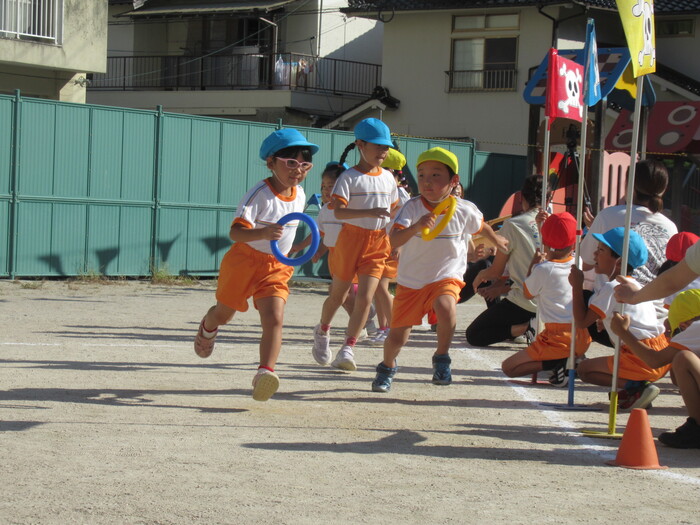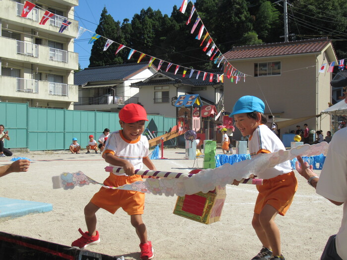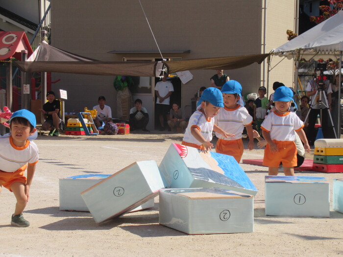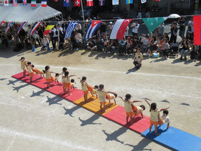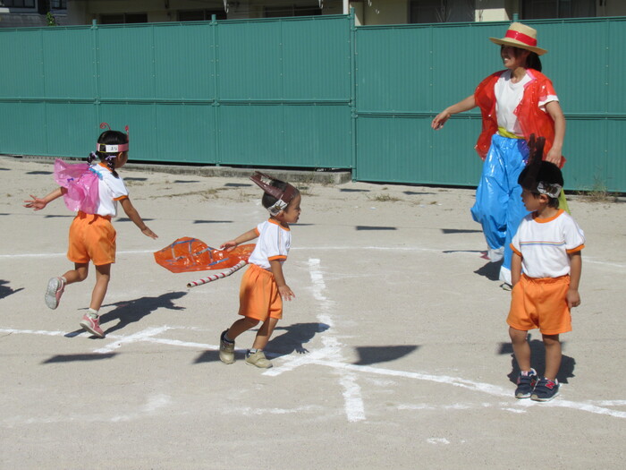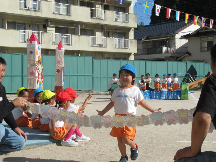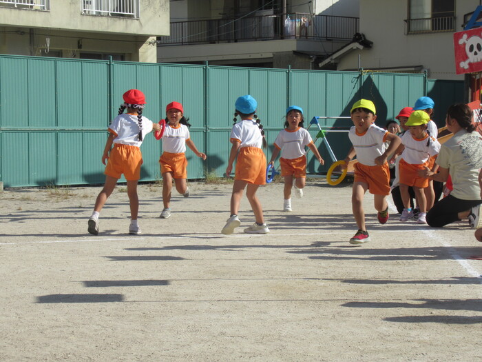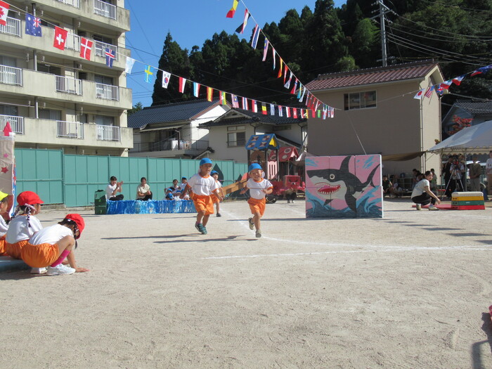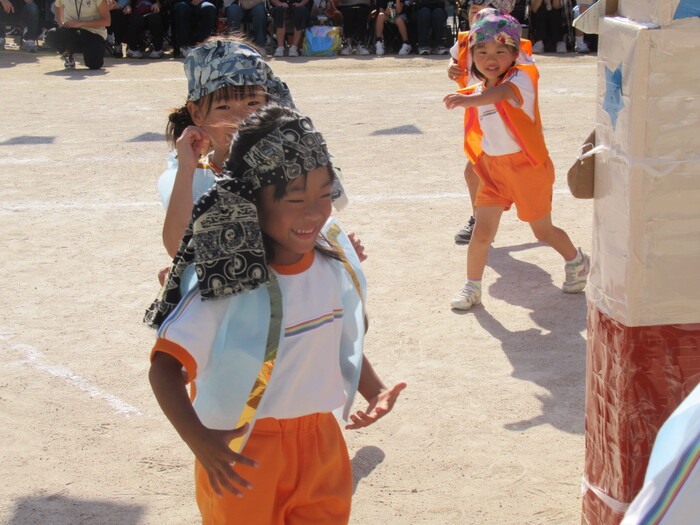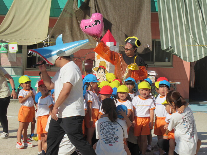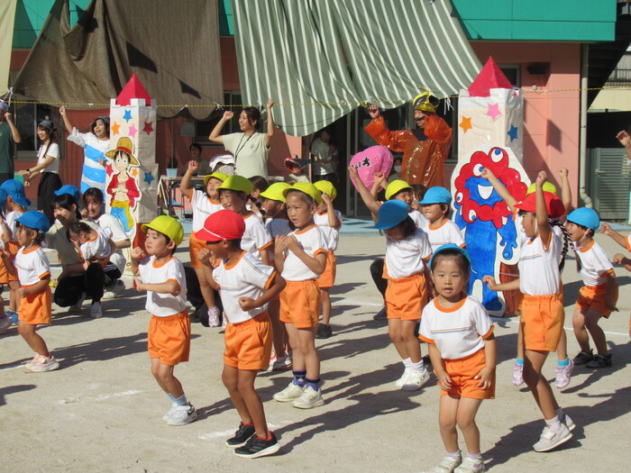 いるか☆くじら組 今年の運動会のテーマは「万博わんぱく海賊団!!」 みんなで心を1つにして協力して楽しむことができたのか、その様子を紹介します!! 練習では転んで涙…みんなの気持ちがバラバラでうまく息が合わず…でも、やっぱり子どもたちの力はすごい✨ 本番!!全員の心が1つになって感動の涙と笑顔あふれる運動会となりました! | ||