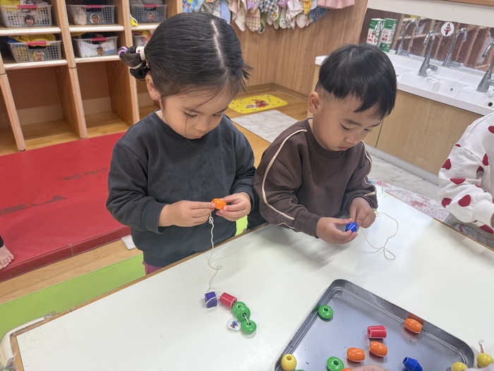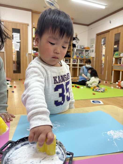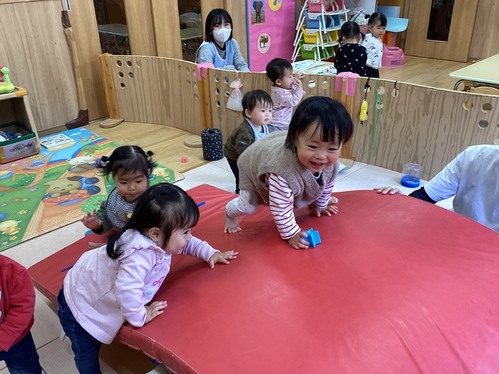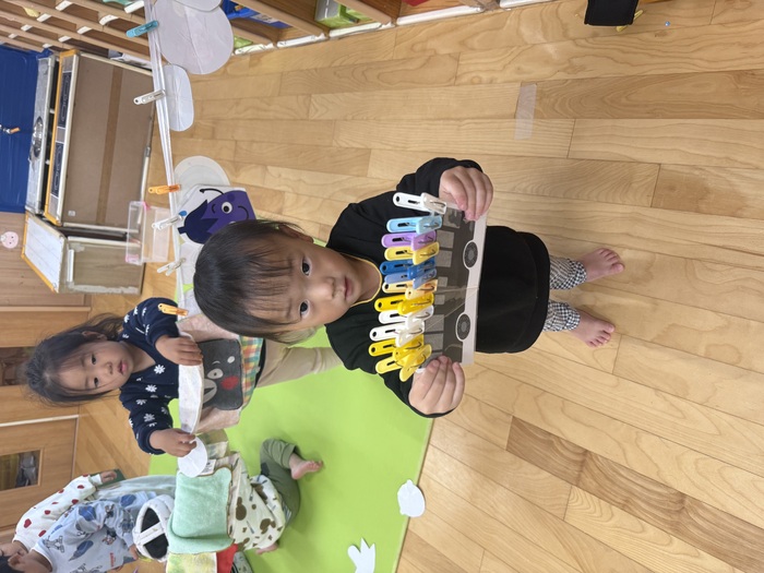 らっこぐみ 毎日寒い日が続いていますが、らっこぐみさんはみんな元気いっぱいです⛄✨ 指先が器用になり、服のボタンやお菓子の袋を自分で開けることがだんだん出来るようになってきました! 指先を使った色んな遊びを日々楽しんでいる子ども達ですよ♪ | ||