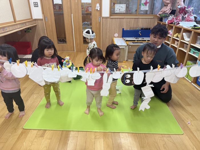 めだかぐみ 寒さが増してきてお部屋での活動が増えてきましたが、お部屋の中でも体操や運動遊びをしてしっかり体を動かしながら元気に遊ぶめだか組さんですよ♬ クリスマスの製作もしてサンタさんを迎える準備もばっちりです✨2025年最後の1ヶ月、体調管理に気をつけながら楽しく過ごしていきたいです😊 | ||