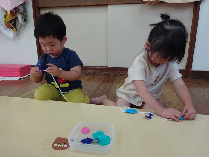 色々な事に興味津々の、ぱんだ組さん! 集中している顔も、可愛いですね! それぞれのセンスで素敵な組み合わせができましたよ! | ||
