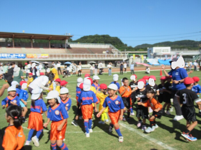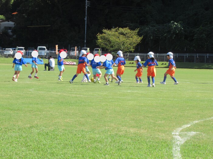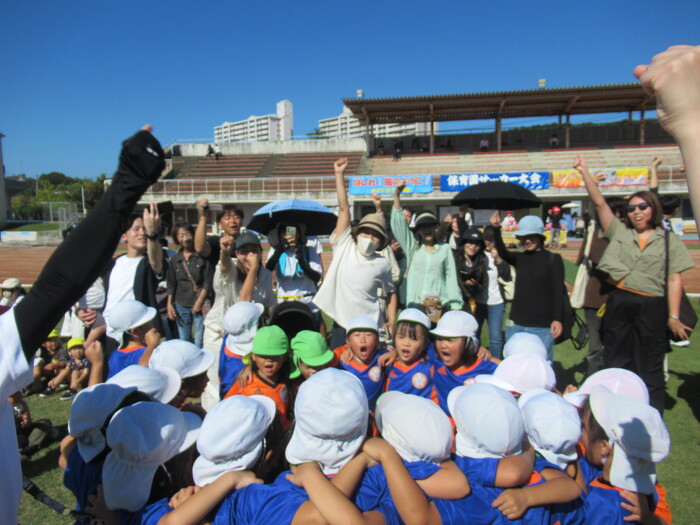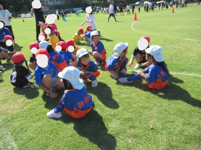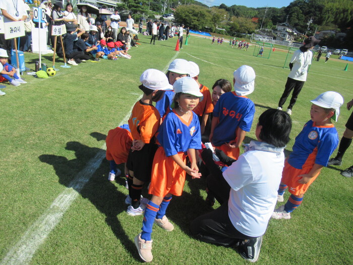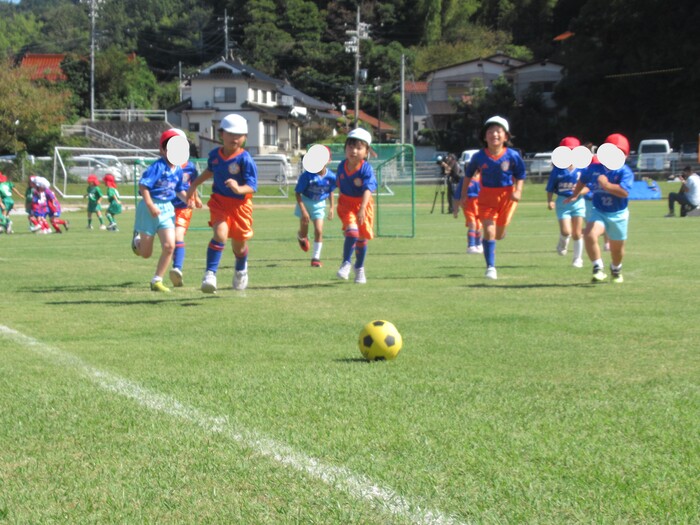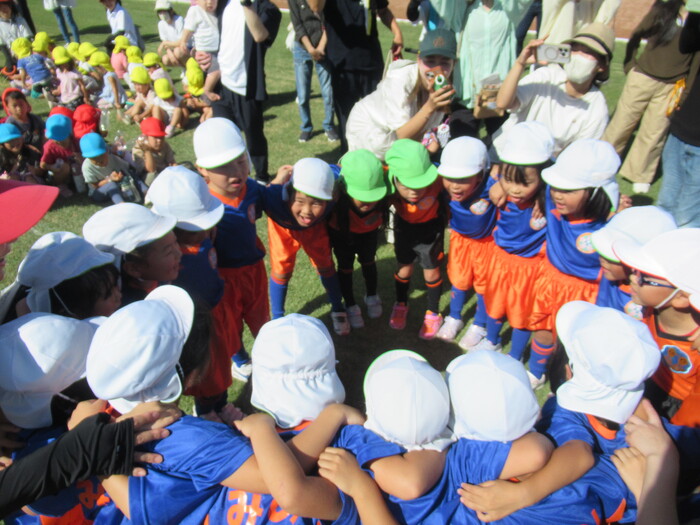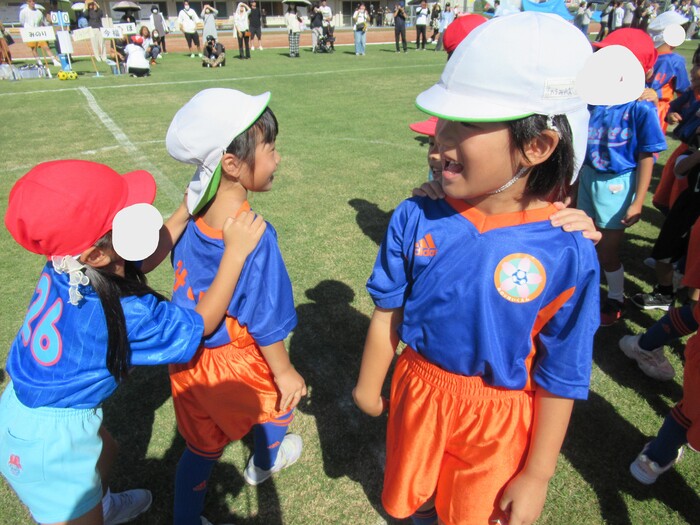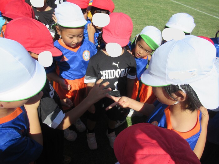 つくし保育園のお友だちと連合チーム! いよいよ試合開始です! | ||