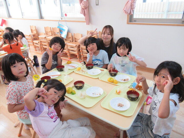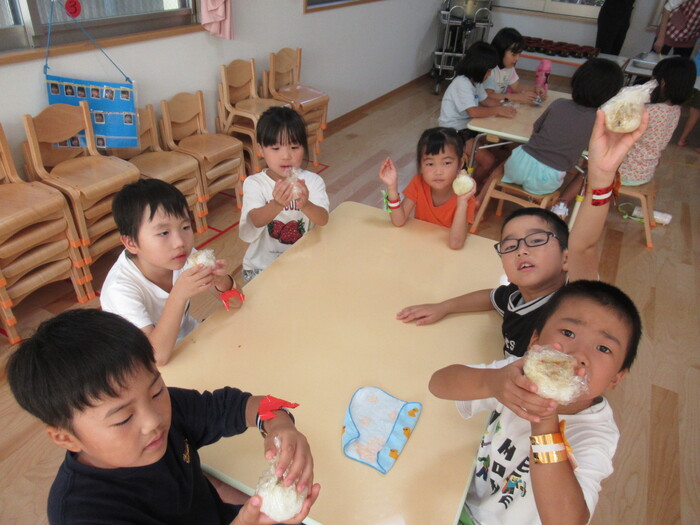 年中さんくま組さん!応援の後のお楽しみ♪お弁当タイム♪ | ||