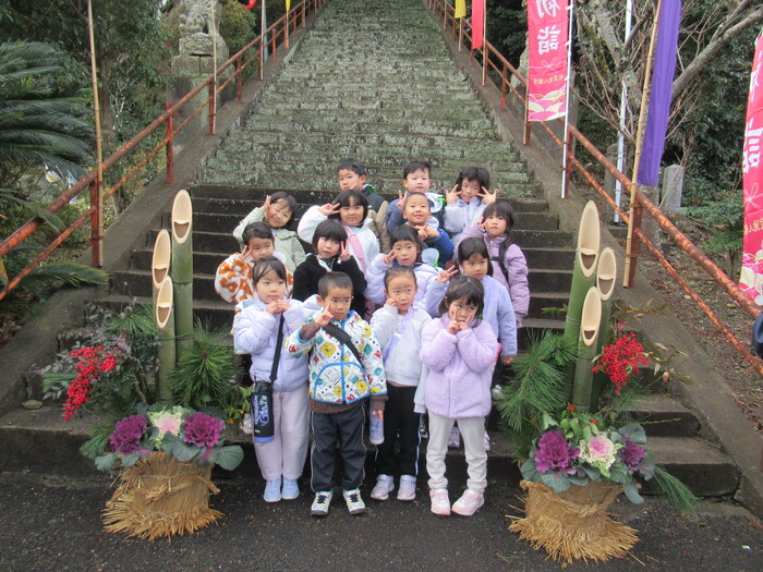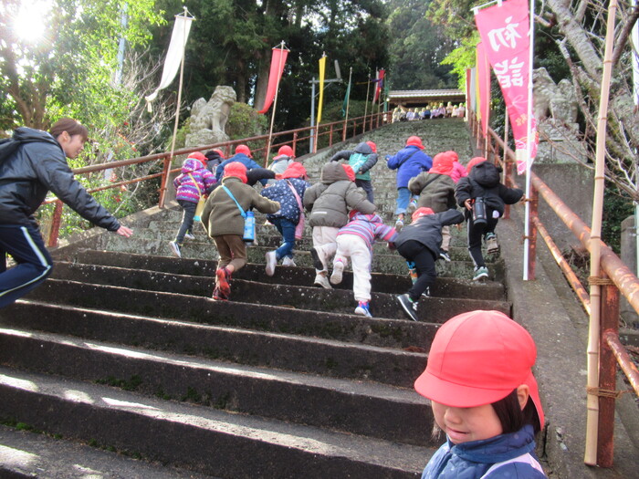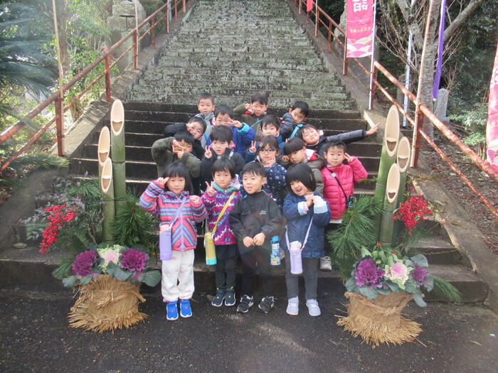 🎍あけましておめでとうございます🎍 今年もよろしくお願いします 新年のスタートということで、神社へお散歩にでかけました。 立派な門松、なが~~~い階段、子どもたちはいろいろな物に大興奮! ドキドキわくわくの新年のスタートとなりました🐎! | ||