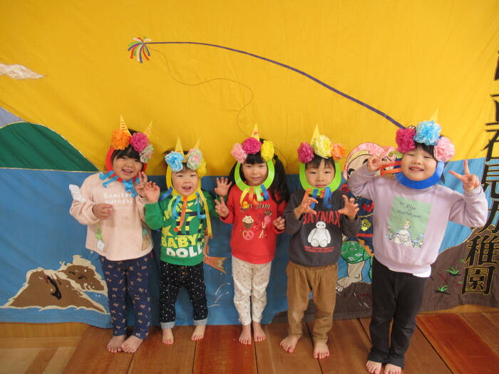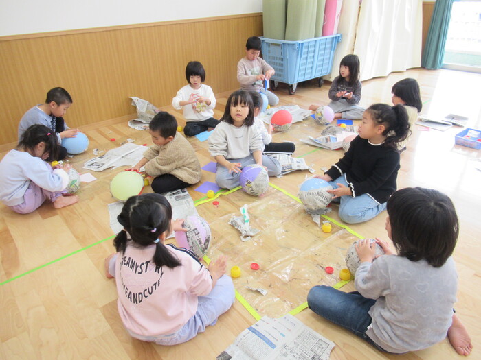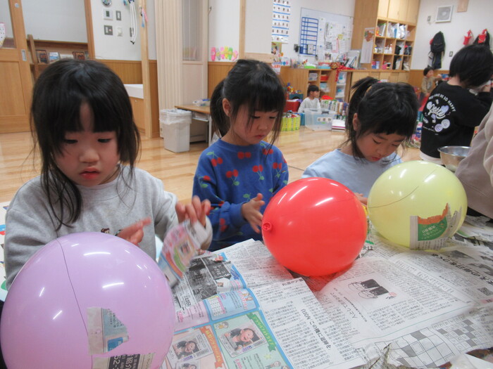 年長さんのお面は風船? | ||