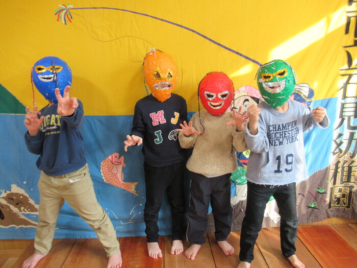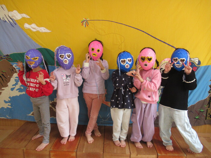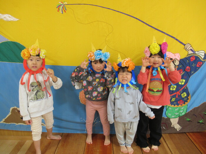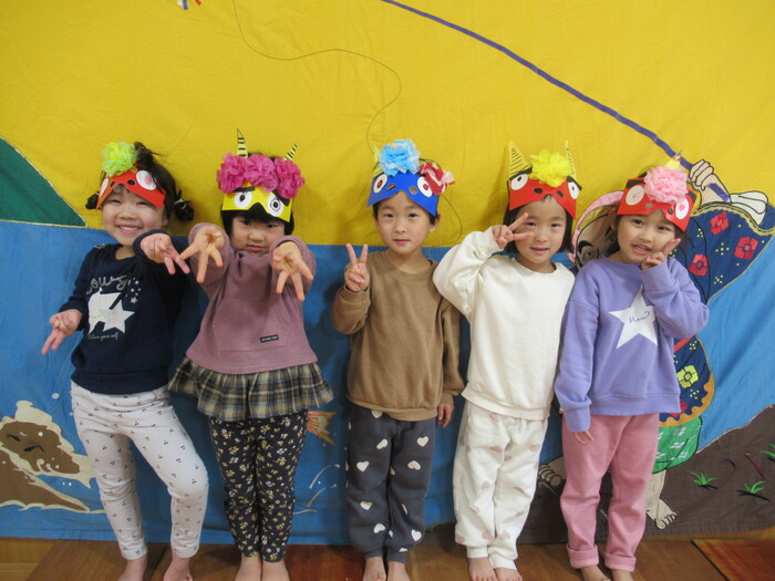 完成した鬼面をつけて みんなの中にいる鬼さんをやっつけよう👹!!! | ||