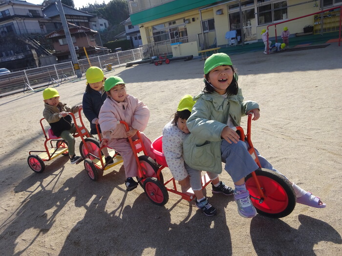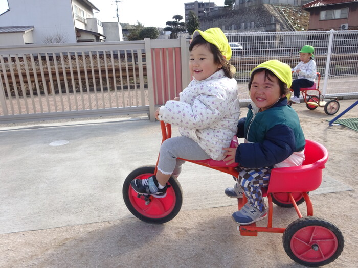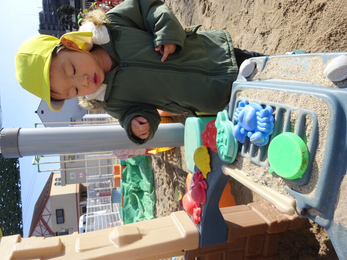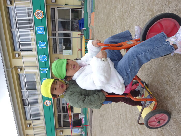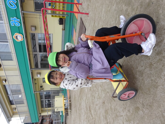 外あそび楽しいよ~♡ 毎日寒い日が続いている中で天気のよい日には外に出て遊びました♪ ふれあい遊びで年長さんが遊びにきてくれて、ぱんだ組さんも大喜び! 日差しが少し暖かく感じられ外あそびもできて楽しい時間になりましたよ(≧▽≦) | ||