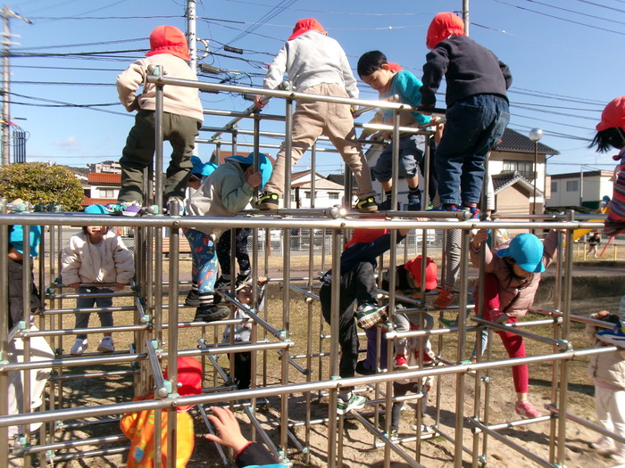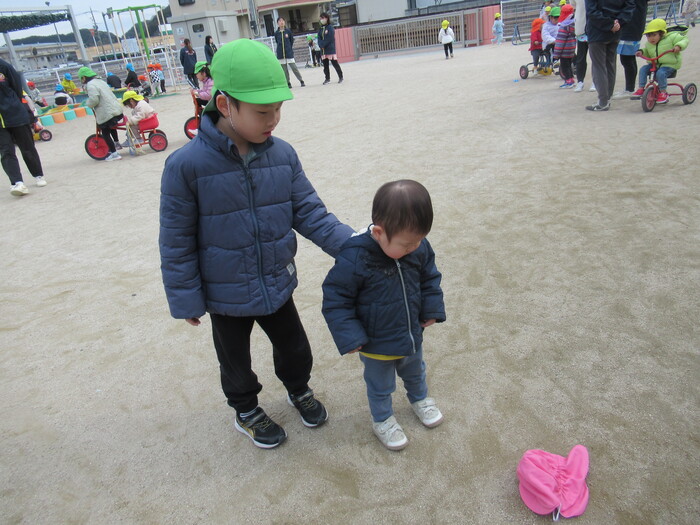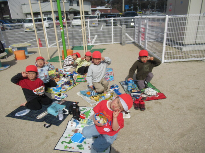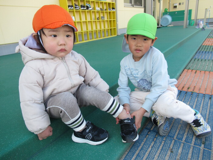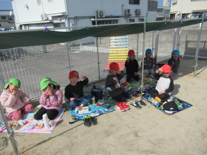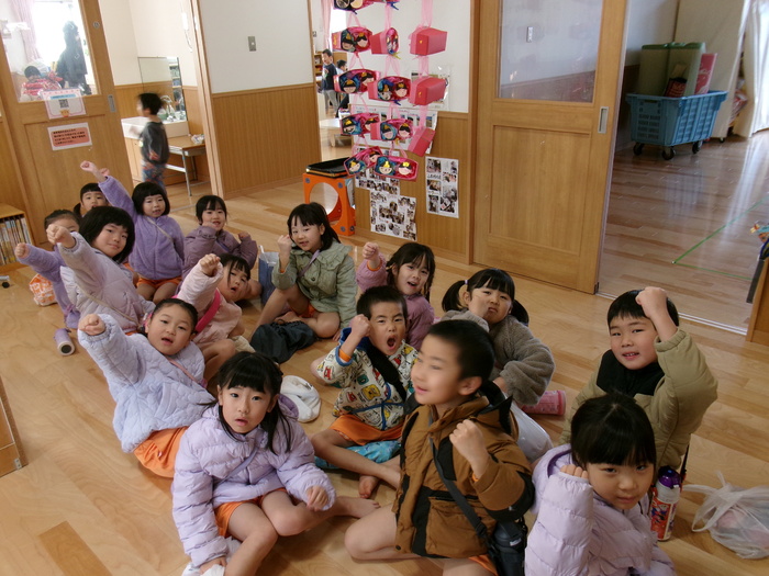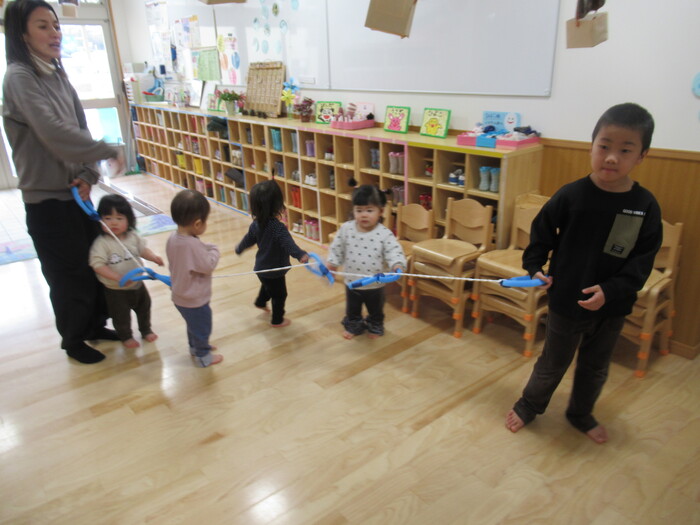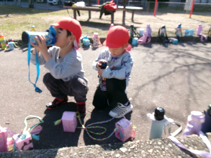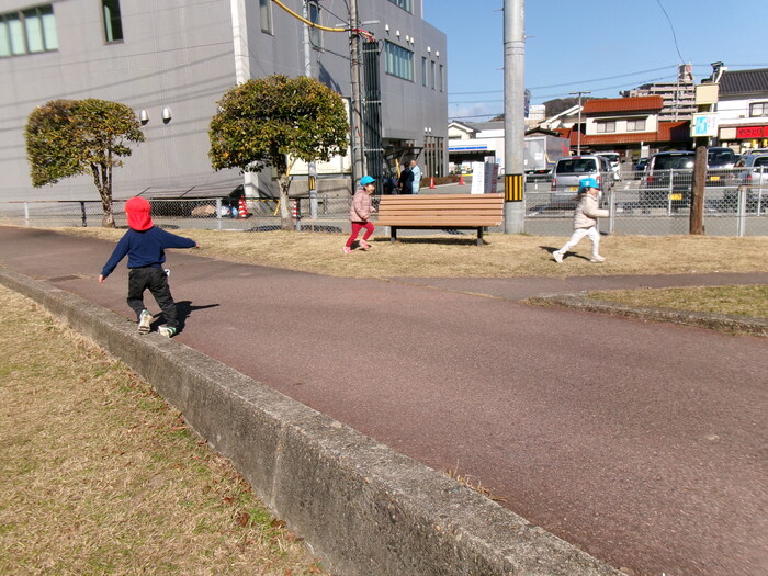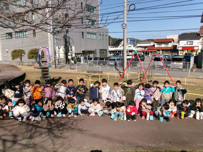 寒さに負けず元気にお散歩に行ってきました!大きな声で「みーぎ ひだり みーぎ よしっ!」とみんなで確認をし安全に歩きましたよ~✨ | ||