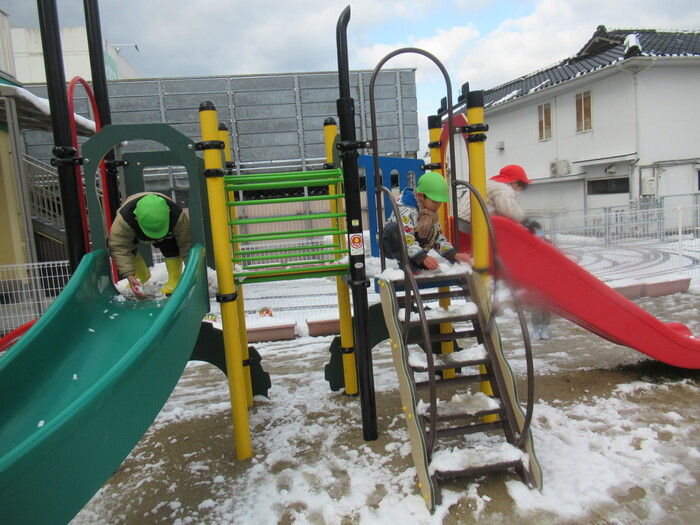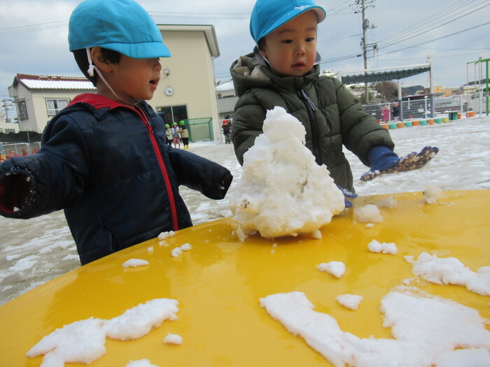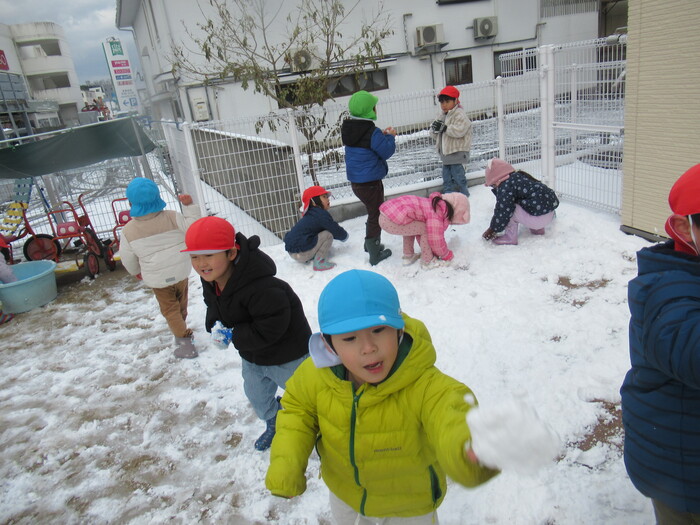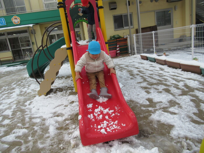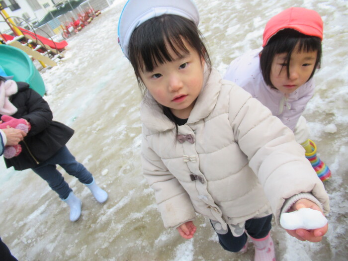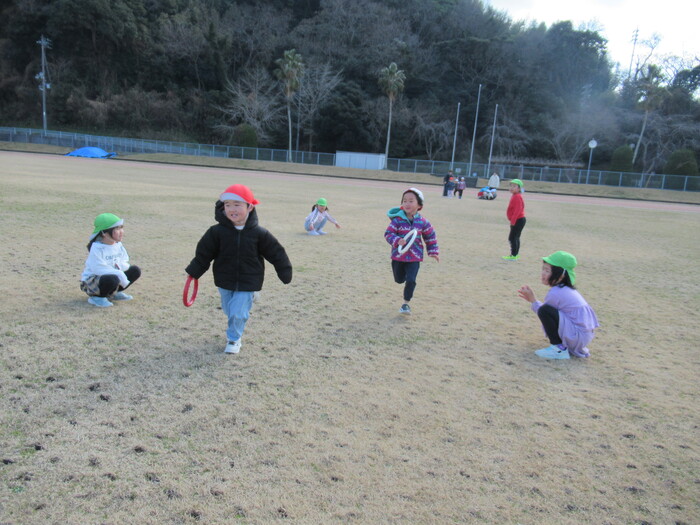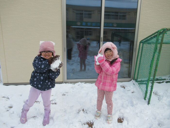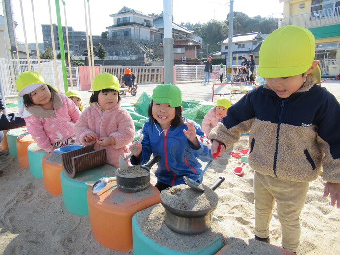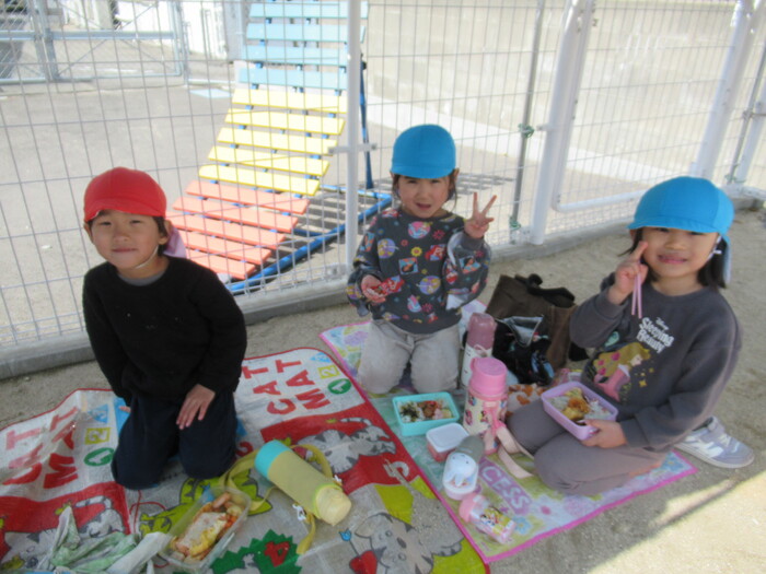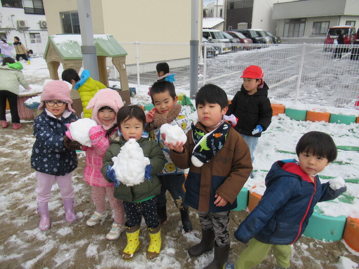寒さに負けず元気にお散歩に行ってきました!大きな声で「みーぎ ひだり みーぎ よしっ!」とみんなで確認をし安全に歩きましたよ~✨ | ||