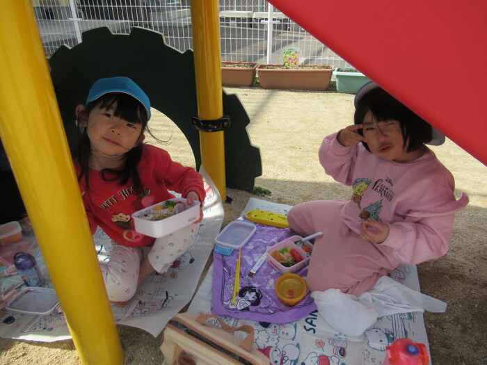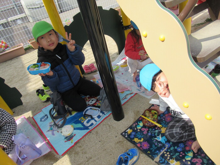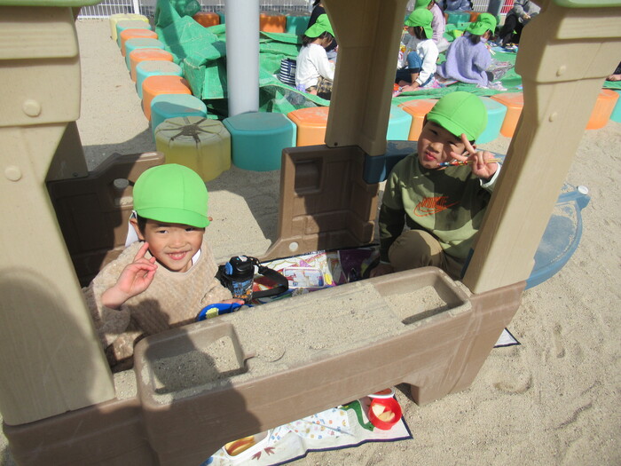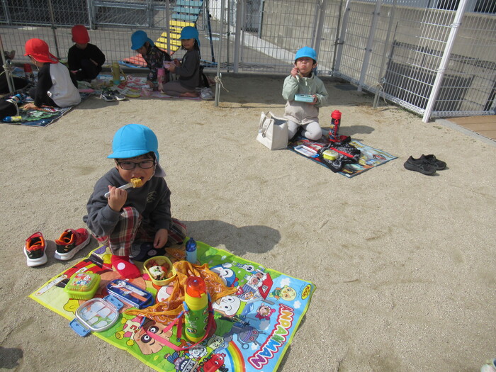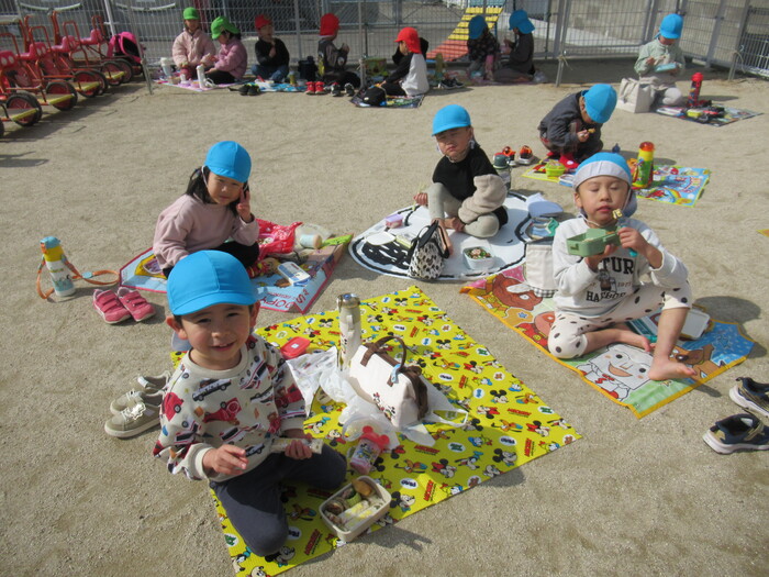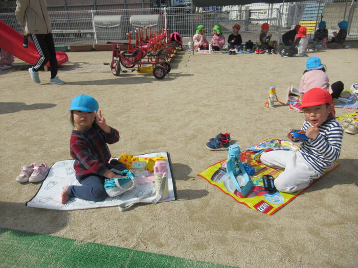 年長さんはふれあい遊びにいきました!小さいクラスのお友だちのお世話をしてくれたり、一緒に遊んで食べて楽しく過ごしました🥰 | ||