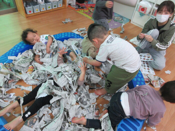 5月1日(火) 室内遊び (新聞紙遊び) ~ こあらぐみ ~ | ||