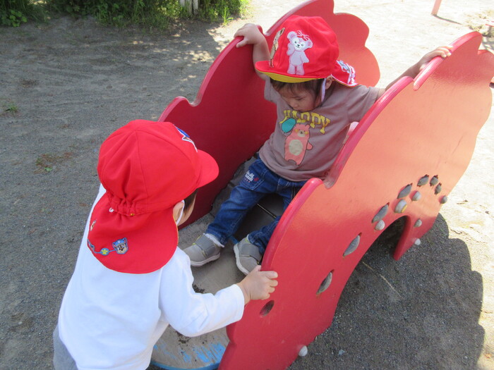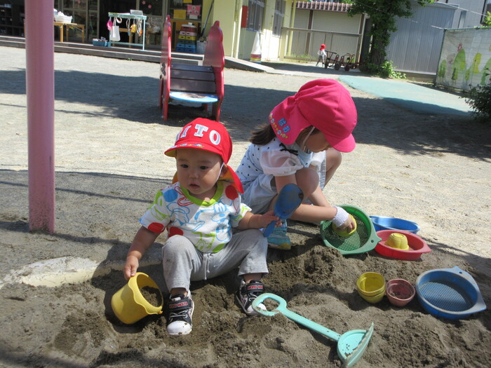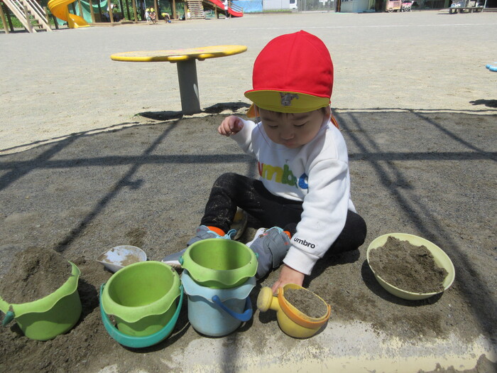 5月10日(金) 園庭にて自由遊び ~ ことりぐみ ~ | ||