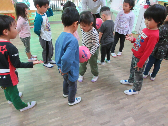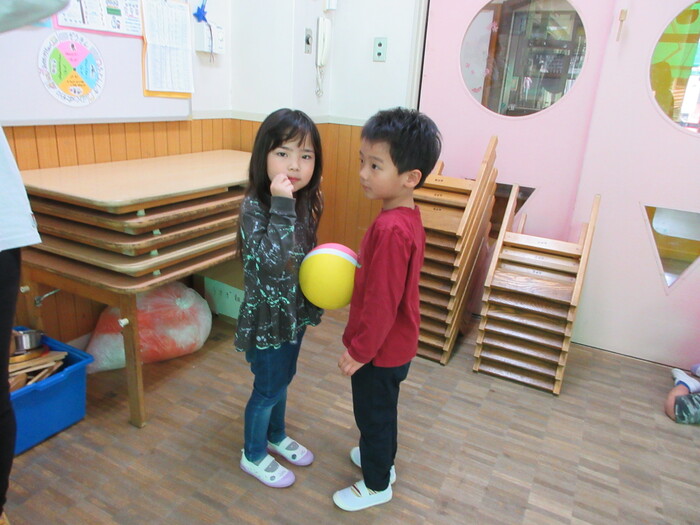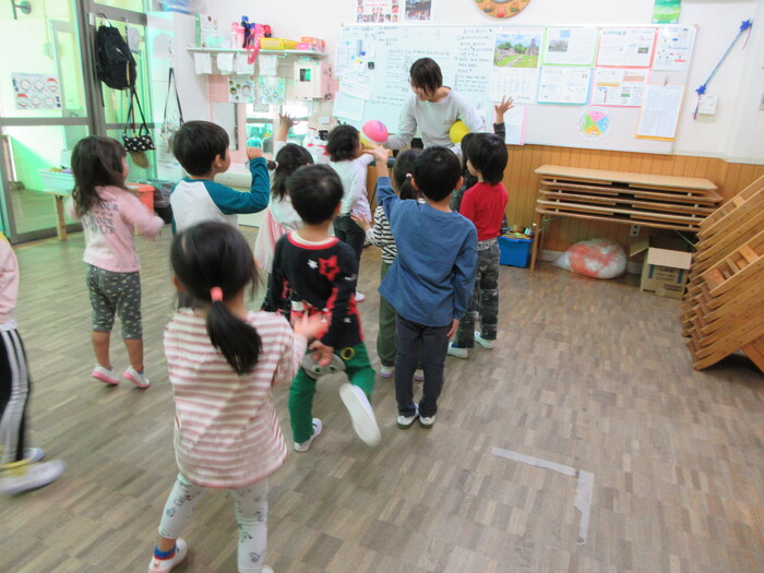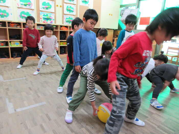 5月21日(火) 室内ゲーム (ボール運びゲーム) ~ うさぎぐみ ~ | ||