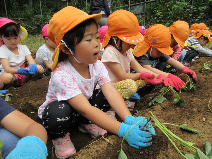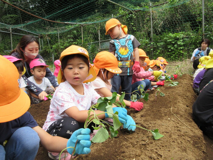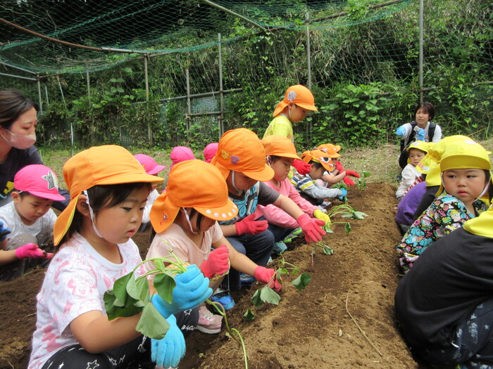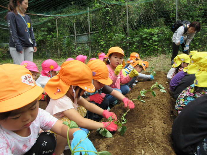 5月23日(木) さつま芋の苗植え (美山小学校裏の畑にて) ~ 幼児クラス ~ | ||