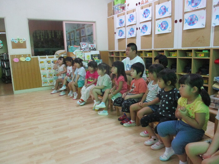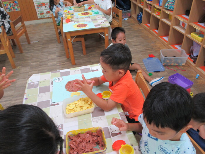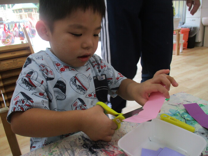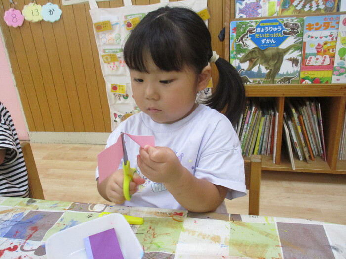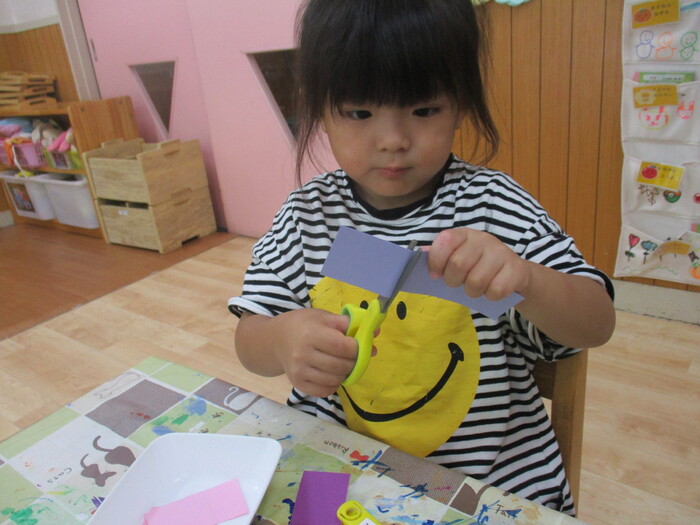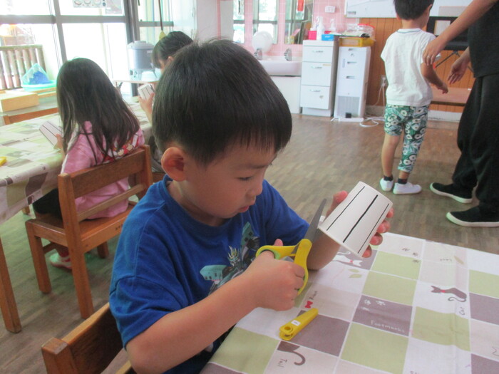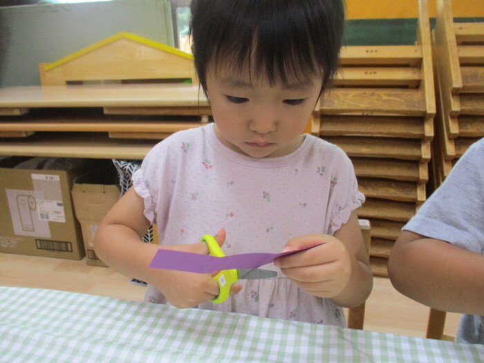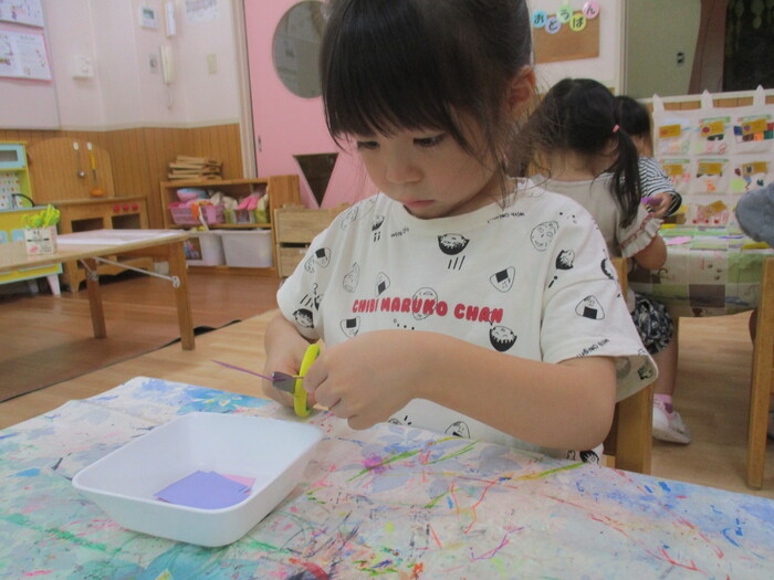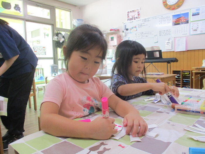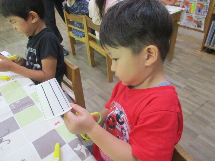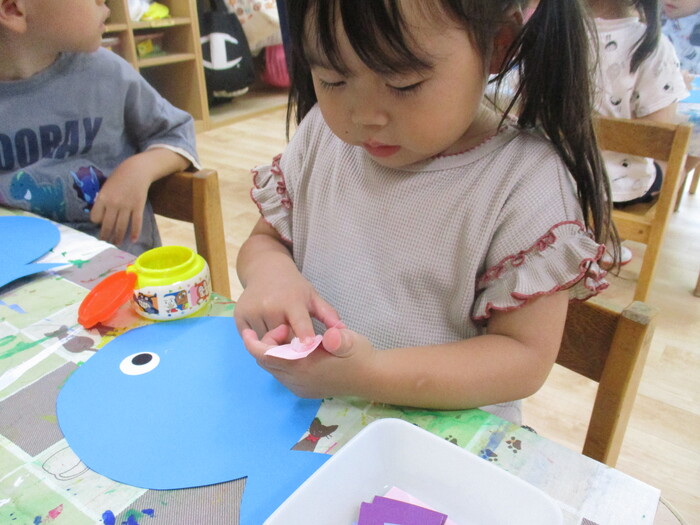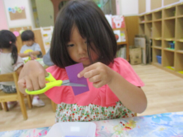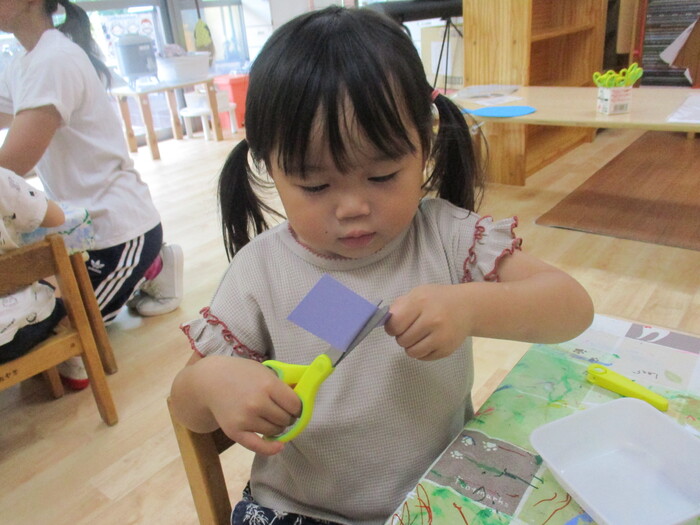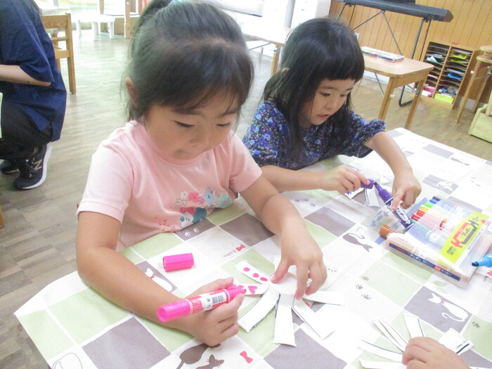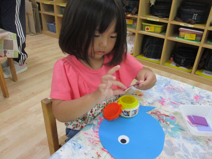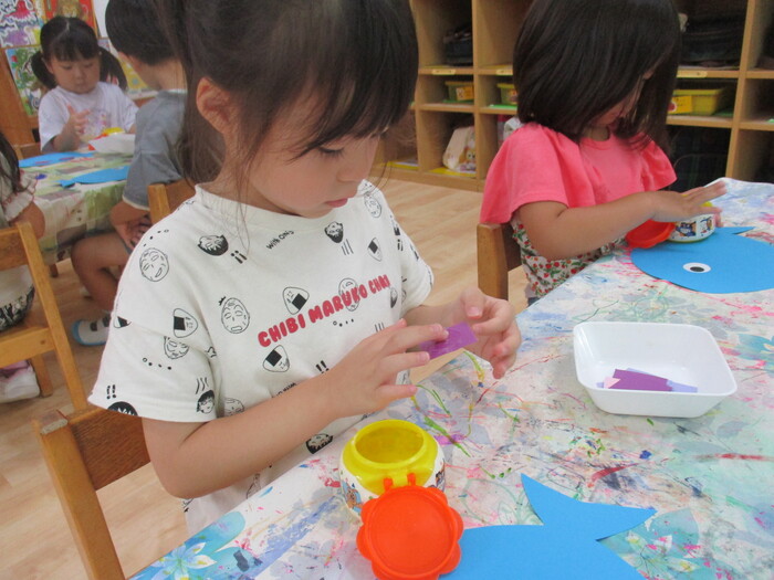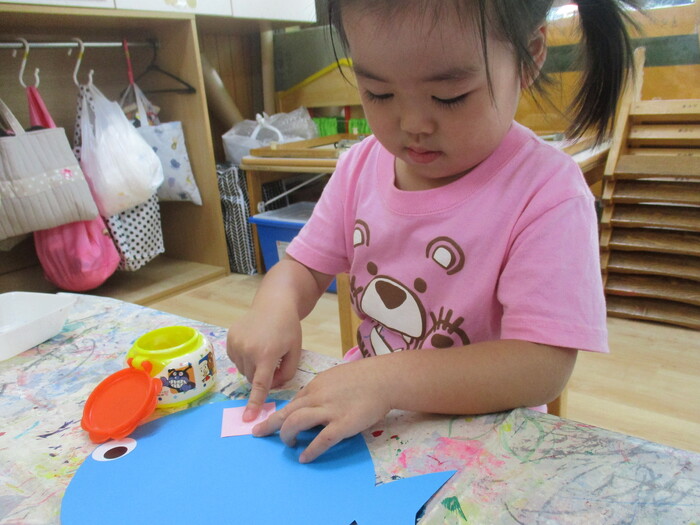 8月13日(火) 制作活動「おさかな」 (はさみ&のりの練習) ~ りすぐみ ~ | ||